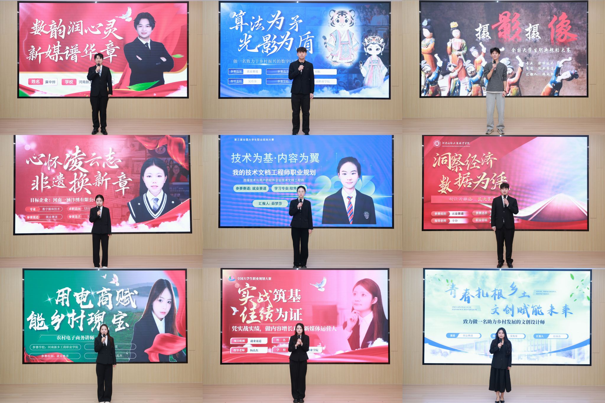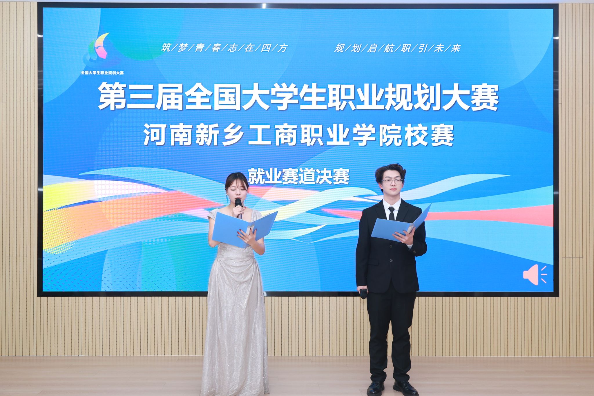为全面落实立德树人根本任务,强化就业育人实效,引导学生树立科学的职业发展观,提升就业竞争力,2025年12月25日,第三届全国大学生职业规划大赛河南新乡工商职业学院校赛决赛在教学楼7A104学术报告厅顺利举办。本次大赛以“筑梦青春志在四方·规划启航职引未来”为主题,自11月启动以来,全校学生踊跃参与,累计吸引4161名学生网络报名,参与率超过98%,覆盖数字经济、数字智能、低空智能与能源装备各学院。经过院级初赛、复赛层层选拔,最终24名选手脱颖而出,成功晋级校级决赛,共同呈现了一场精彩纷呈的职业规划盛宴。