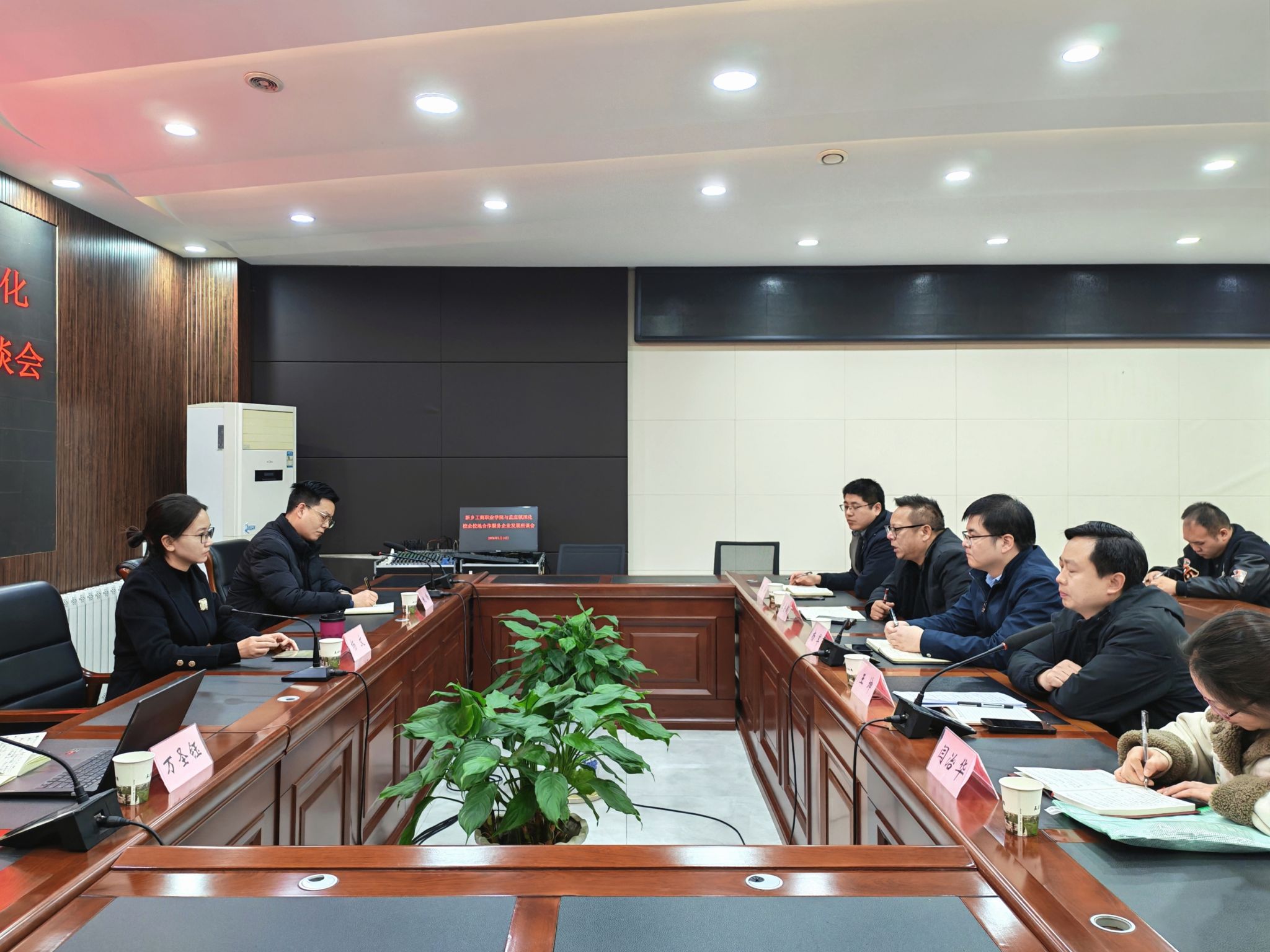 与会期间,辉县市人社局、工信局负责人分别介绍了当地人才政策、产业现状及企业技术需求。双方就联合开展专项招聘活动、共建技能培训平台、推动企业技术攻关与学校成果转化等具体合作方向进行了务实研讨,现场气氛热烈、共识广泛凝聚。