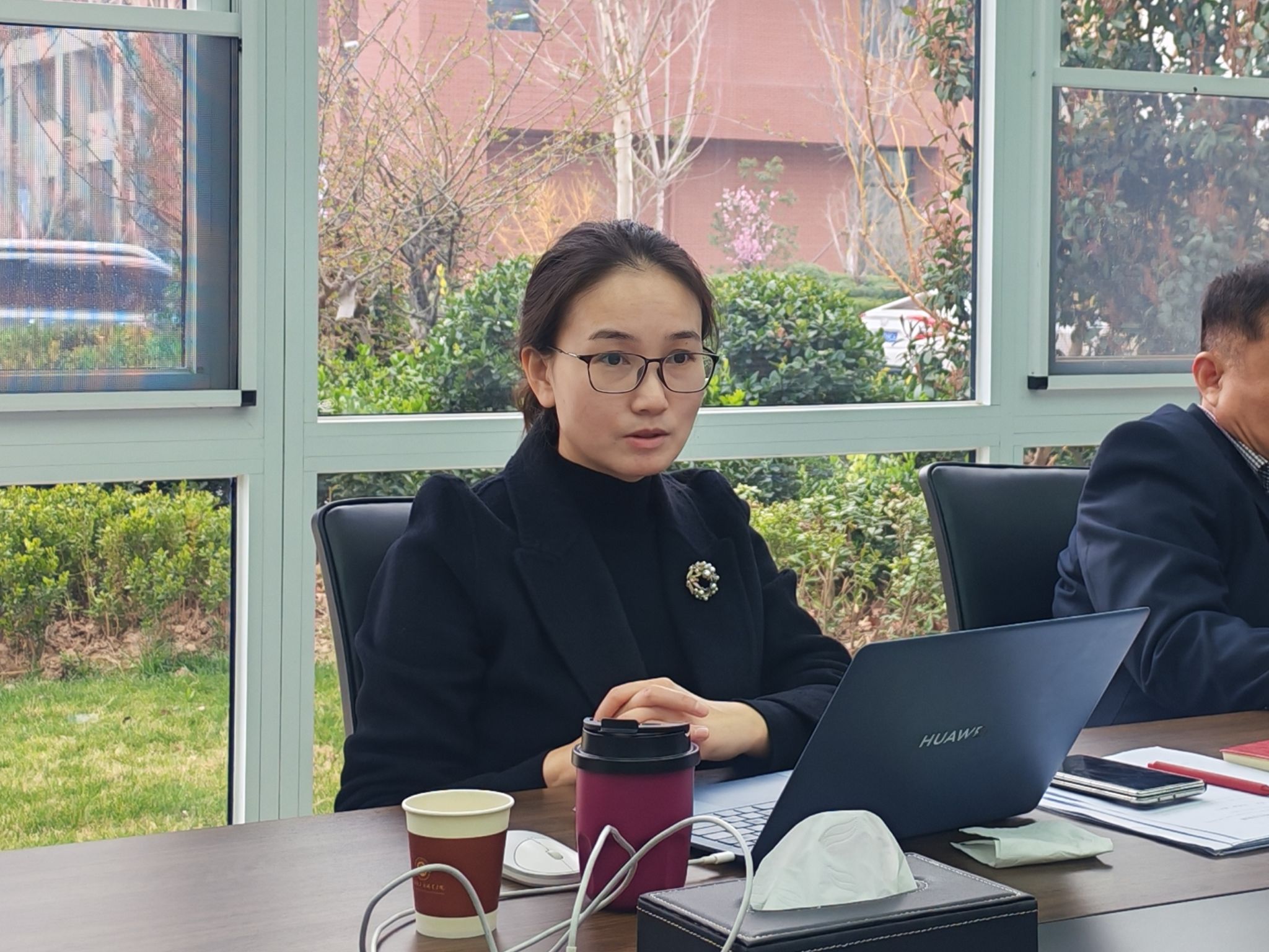 数字智能学院副院长李婉磊汇报了“数智产业学院”项目,拟与河南尚企育华网络科技有限公司共建产业学院,推动“教学—生产—研发”一体化平台建设。